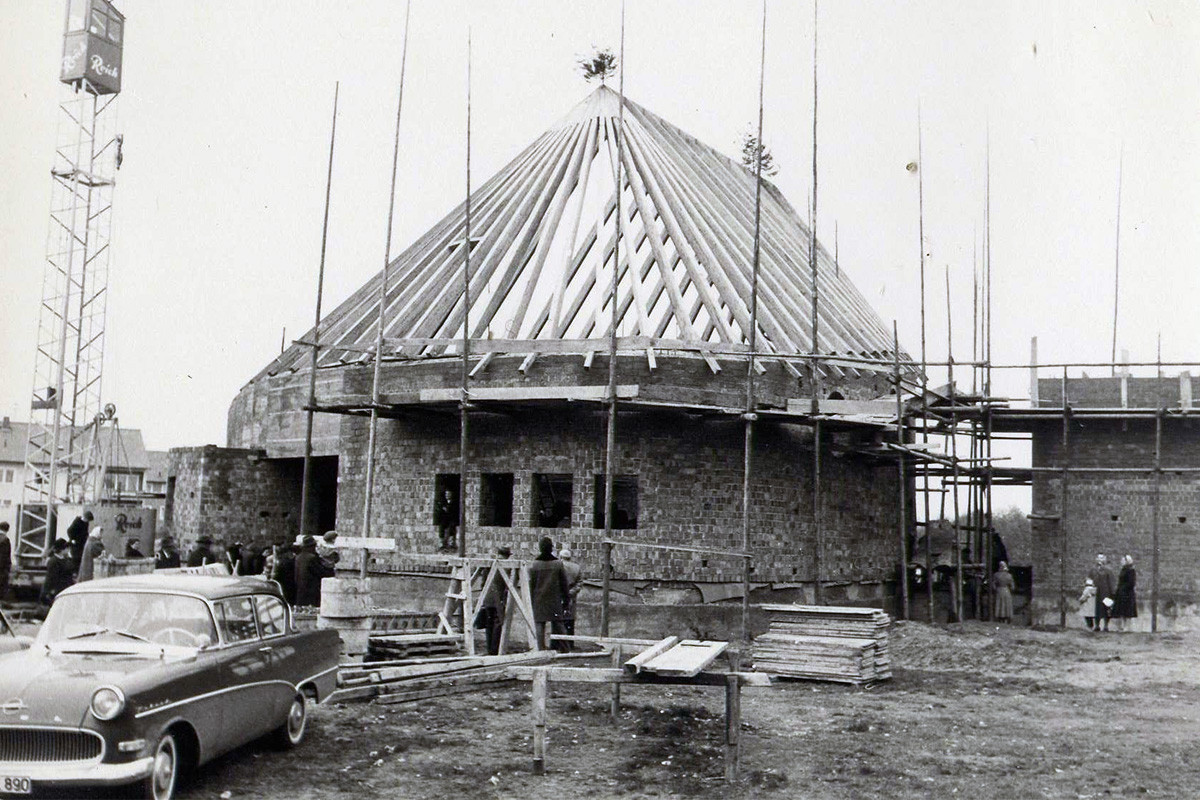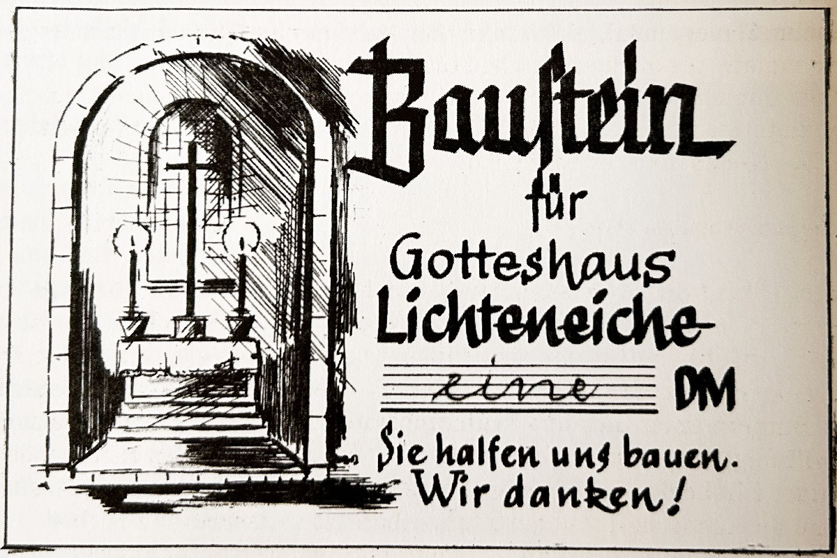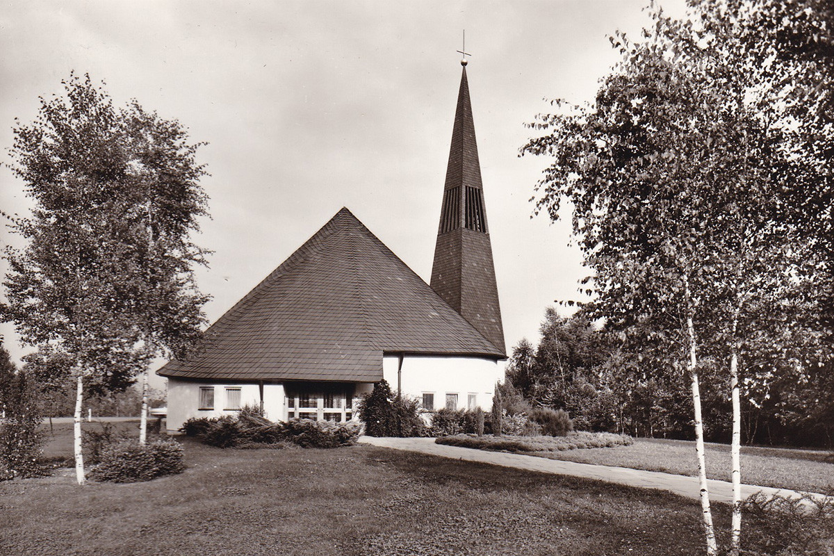 1957 genehmigte das Landeskirchenamt den Kauf eines Bauplatzes für die Kirche und übernahm dafür die Kosten. 1958 waren bereits 4000 DM für den Kirchenbau gesammelt worden.