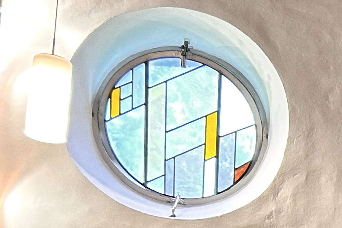 Die klamme Gemeinde konnte sich bei der Erbauung der Himmelfahrtskirche nur relativ einfache Glasfenster leisten. 1970 besucht das Ehepaar Anna und Lajos Bogyo, aus Montreal die Himmelfahrtskirche. Sie waren so von der Kirche angetan, dass sie auf einer Zigarettenschachtel neben der Nachricht „Die schönste Kirche, die ich in Deutschland gesehen habe“ ihre Adresse nebst Spendenzusage für ein farbiges Glasfenster hinterließen. Schmidt-Rednitz erhielt den Auftrag für dieses und vier weitere Fenster und konnte die Gestaltung auf sein Mosaik abstimmen.